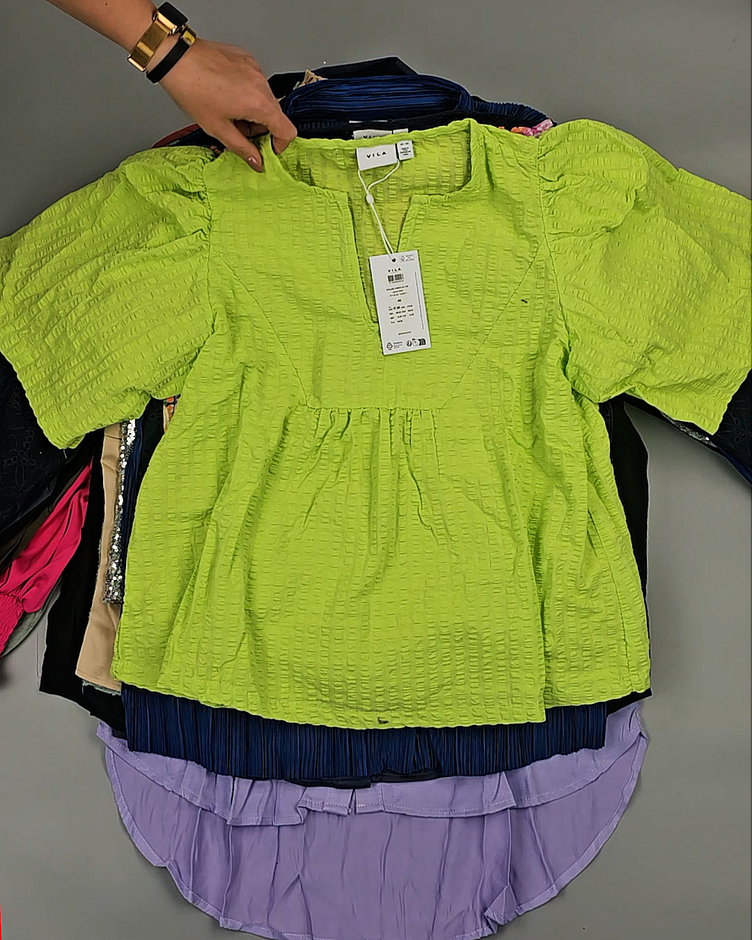 Среди нашего ассортимента всегда в наличии Сток в количестве более 450 тонн. Каждую неделю новые привозы из Европы, в том числе источником оптовых поставок бренда VILA является ДАНИЯ.